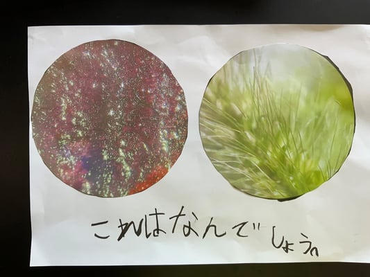 さらに、この子どもたちが発見したものは写真に撮影して印刷し、紙芝居形式のクイズに。「これな~んだ」という掛け声とともに、自分が観察したものをみんなに紹介し、その面白さ、不思議さを友達と共有していきます。共有することで、自分一人では発見できなかったこと、気が付かなかった視点も知ることができ、子どもたちの世界はさらに広がっていきます。