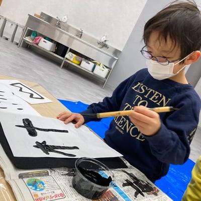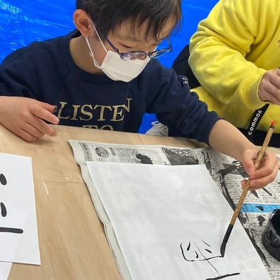commonでは、学校とはひと味違う書初めを行いました。