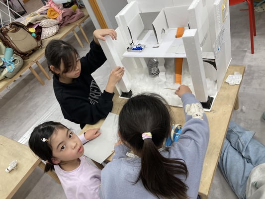 制作の初期段階では、「今日は土台だけ作ろう」「ここまで頑張ろう」と目標を決めて計画性を持って進めるチームや、「先に土台から作り、組み立てた方がやりやすい」などチームで作戦会議する姿がとても印象的でした。